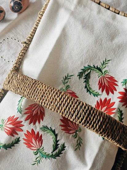 Embroidered with traditional red and green cvetje (flowers), it adds a vibrant, elegant touch to your Easter basket, table, or home décor. In Slovenian households, these baskets were traditionally filled with Easter delicacies and taken to church for blessing (Žegen), making the cover a cherished family keepsake passed down through generations.